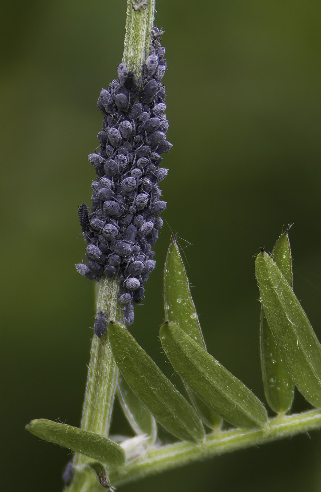 wings, and a tight group of blue-gray coloured aphids were clustered